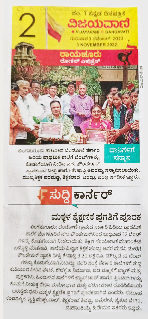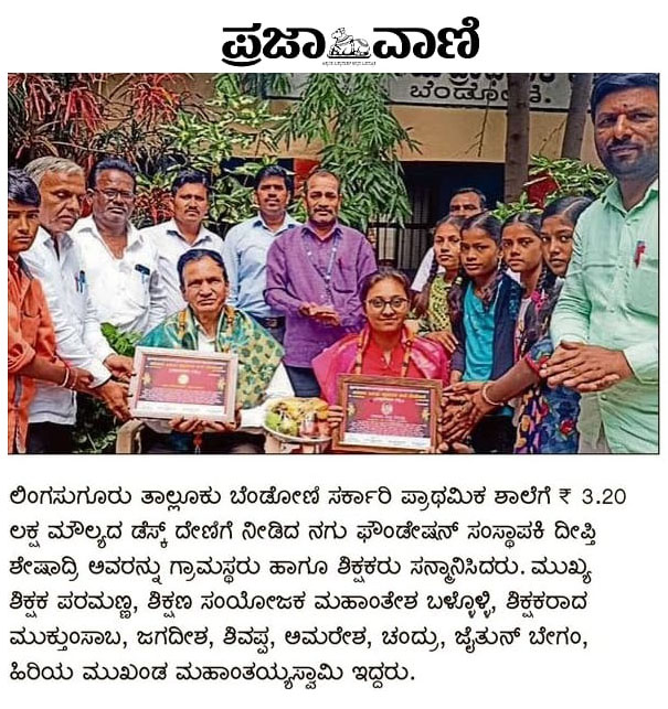 To reduce the burden on earth due to accumulation of non biodegradable waste, Nagu Foundation is providing benches made of non biodegradable waste to rural schools of Karnataka.