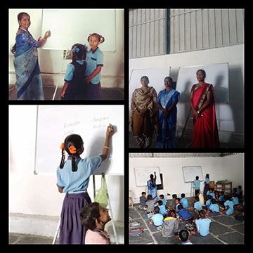 Much needed white bards were provided to Government Higher Primary School, V K Camp, Bellary district.
