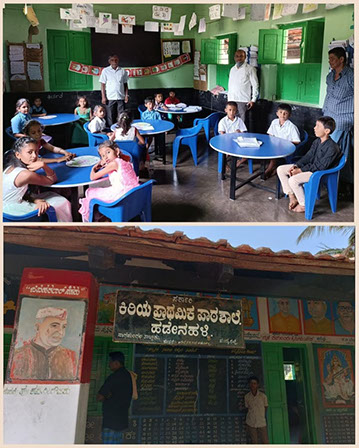Amenities like tables and chairs were provided to students of a government school in Mandya district. for effective and happy learning.